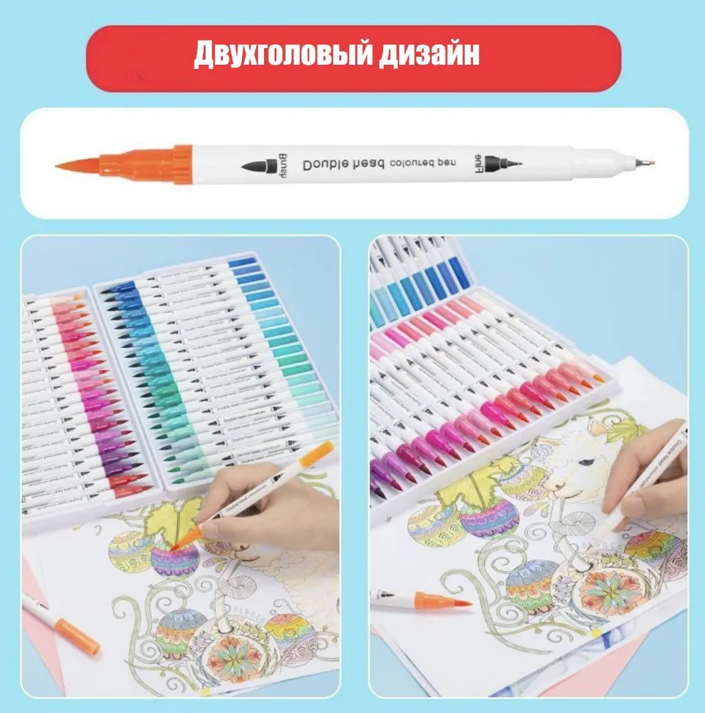 Набір маркерів-лінерів і маркерів-пензлів WORISON з м'якою головкою на водній основі 100 шт.