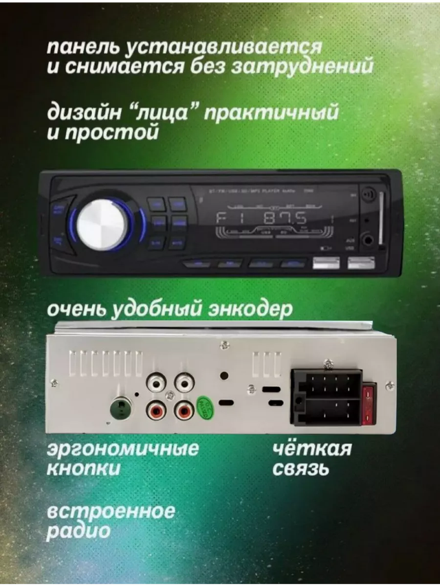 ✅ Наявність входу AUX на передній панелі дає змогу легко під'єднати ваш телефон або MP3-плеєр до магнітоли, розширюючи можливості відтворення музики.