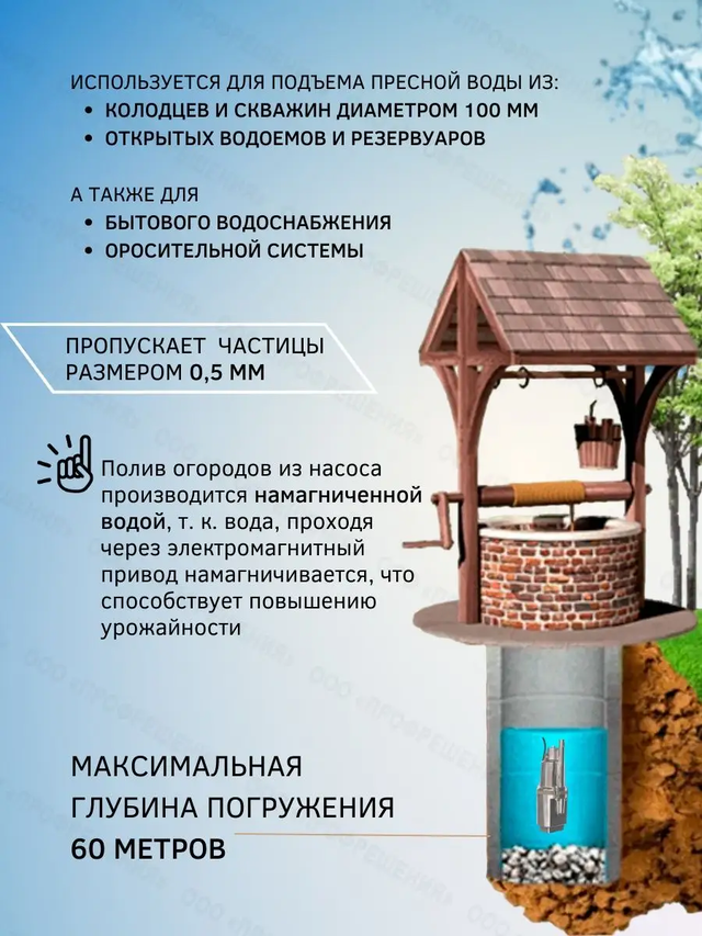 ✅ Вібраційний насос призначений для ефективного підіймання чистої води з колодязів і свердловин із внутрішнім діаметром не менш ніж 100 мм. Він також широко використовується для перекачування води з відкритих водойм, що робить його важливим інструментом для поливання та інших господарсько-побутових потреб.