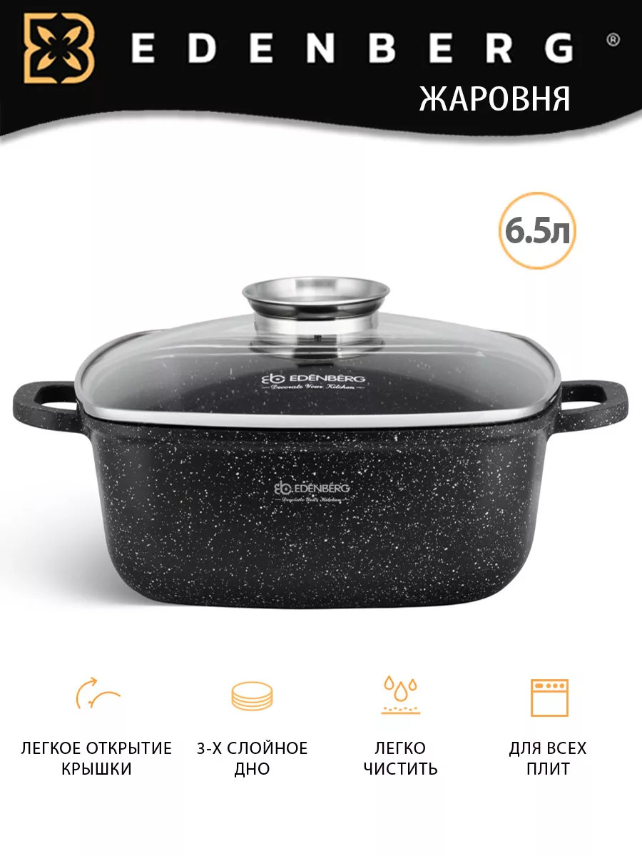 Казан EDENBERG EB-8115 (6,5л, 28 см, квадратний, мармуровий)